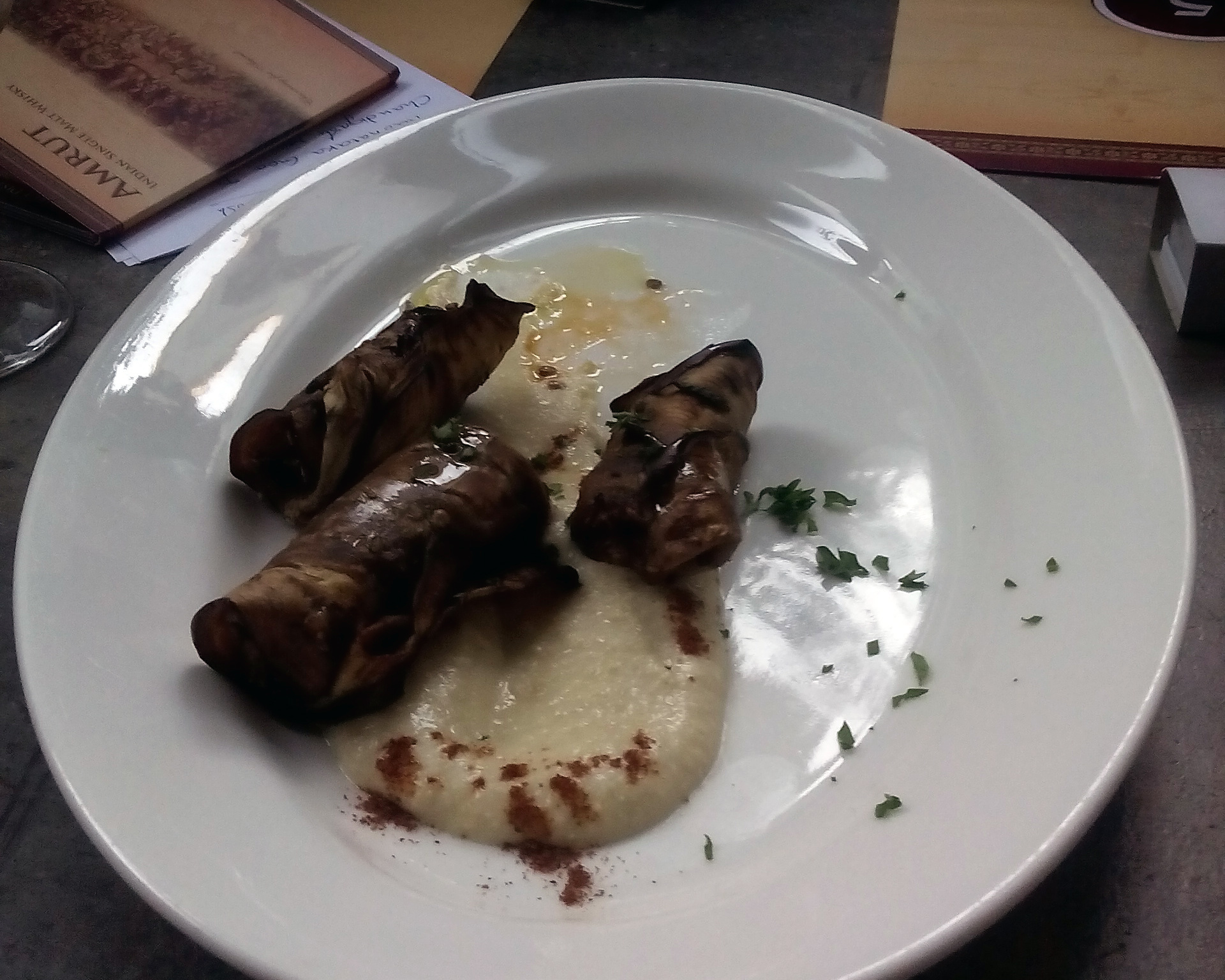 1.Stuffed mini eggplant roulade: hummus